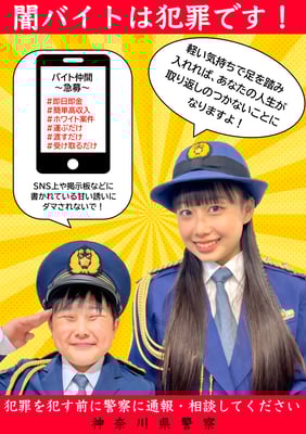 第一弾に続き、今回は神奈川県警の「闇バイト撲滅」と、戸塚警察署の「不審な訪問業者撲滅」の啓発コラボポスターをリリースしました!神奈川県の学校や公共施設に2,000部掲載。またチラシとして20,000部の新聞折込をおこないました!